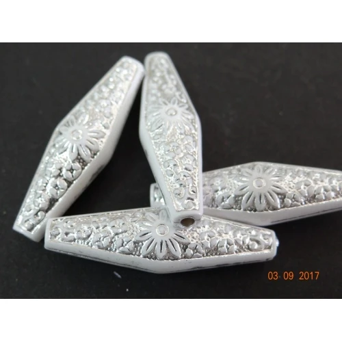 пластмасови мъниста - бели със сребриста нишка