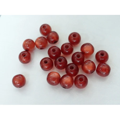 пластмасови мъниста - топче имитация на "котешко око" размер : d - 6 мм , отвор - 1 мм , червени обявената цена е за пакет от 100 броя мъниста минимално количество за поръчка 1 пакет