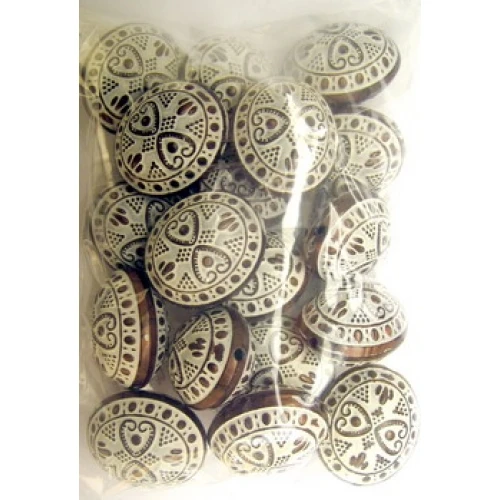 пластмасови мъниста - Антик , кафяви гравирани с бяло