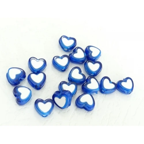 пластмасови мъниста - сърца , сини с бяла основа