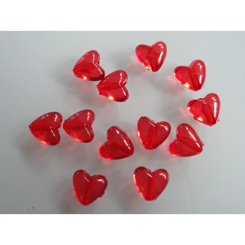 пластмасови мъниста - сърца тип кристал, прозрачни,червени