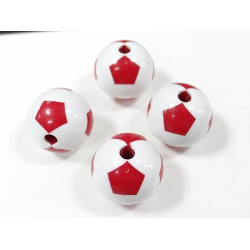 пластмасови мъниста - топчета , футболна топка , бяло с червено