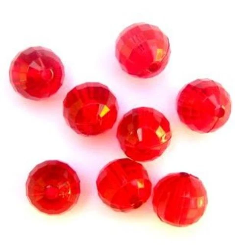 пластмасови мъниста - топчета, фасетирани, червени , прозрачни