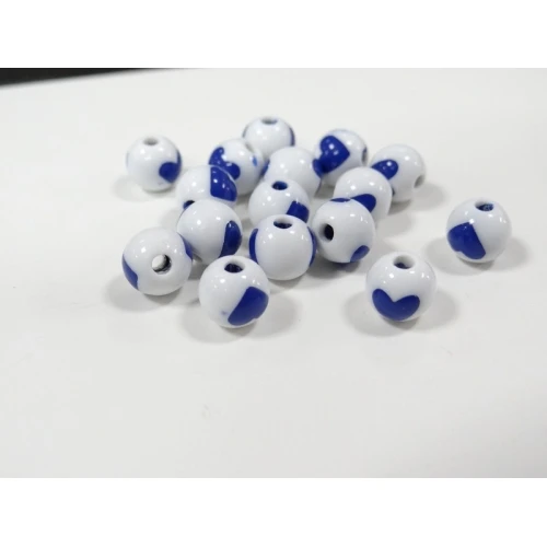 пластмасови мъниста - топчета , бели със сини сърца