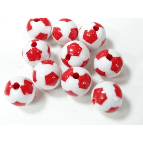 пластмасови мъниста - топчета , футболна топка , бяло с червено