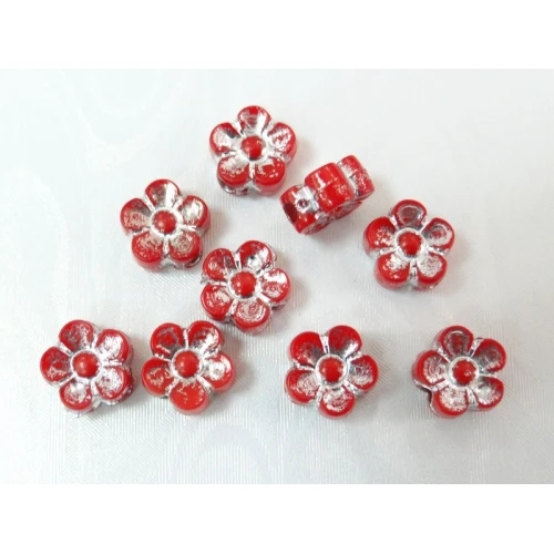 пластмасови мъниста - цветенца , червени със сребриста нишка