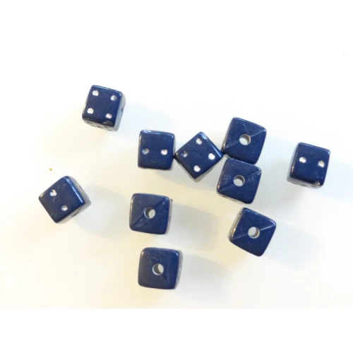 пластмасови мъниста - зарчета , сини с бели точки
