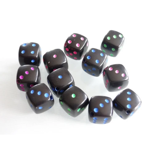 пластмасови мъниста - зарчета , черни с електрикови точки