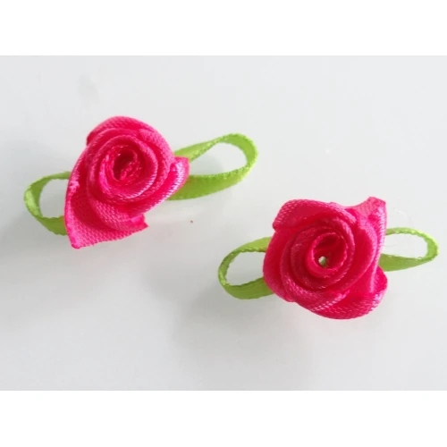 сатенени розички с листенце - тъмно розови