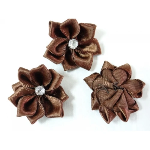 сатенени цветя с прозрачно камъче - кафяви