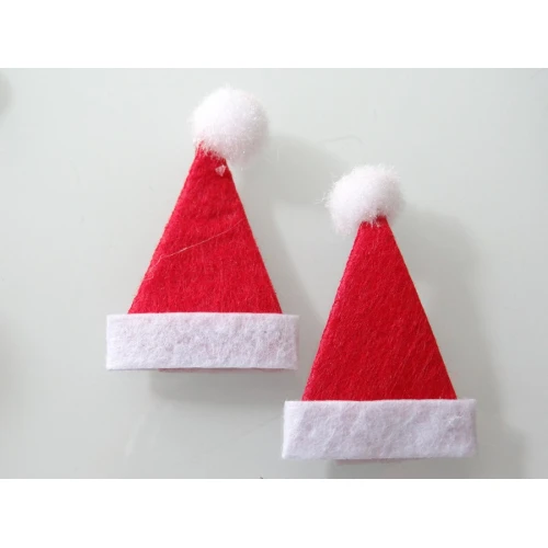 шапчици с помпон от филц за декорация - червени