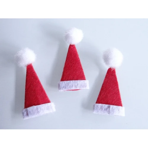 шапчици с помпон от филц за декорация - червени