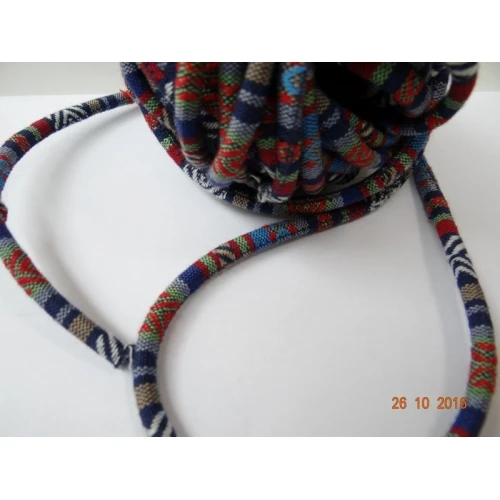 шнур - текстил , объл - пъстър , тъмно син : 6 мм