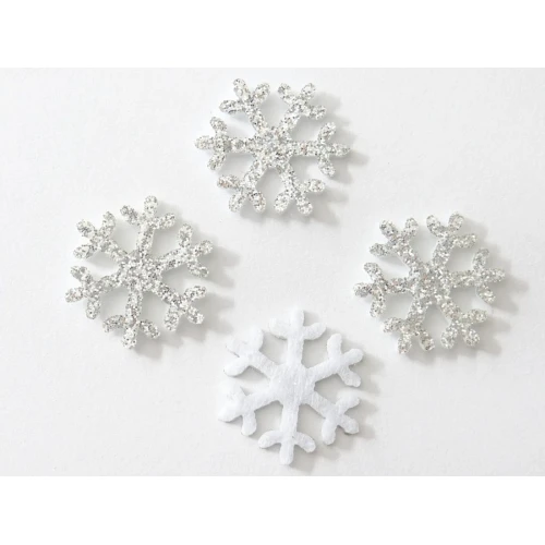 снежинки от филц за декорация - бели със сребърен брокат