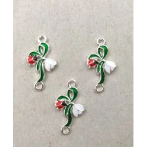 свързващ елемент за гривна - кокиче с калинка