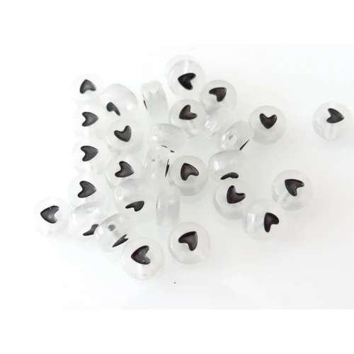 пластмасови светещи мъниста - шайба , прозрачен , сив с черни сърца