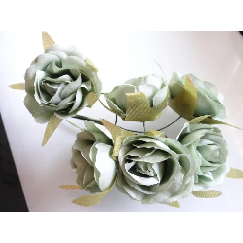 текстилни рози с телени дръжки - зелени