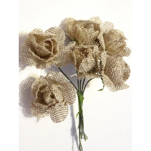 текстилни рози с телена зелена дръжка , тъмно бежово