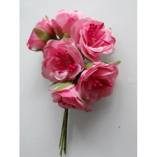 текстилни цветя с телени дръжки и тичинки - розови