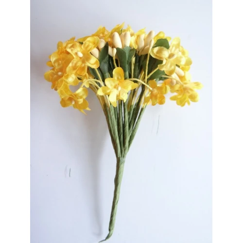 текстилни цветя - жълти с тичинки и със зелена дръжка