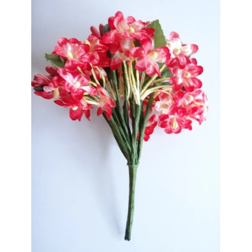 текстилни цветя - червени с тичинки и със зелена дръжка