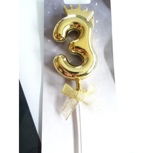 топер за торта - златна цифра , тройка